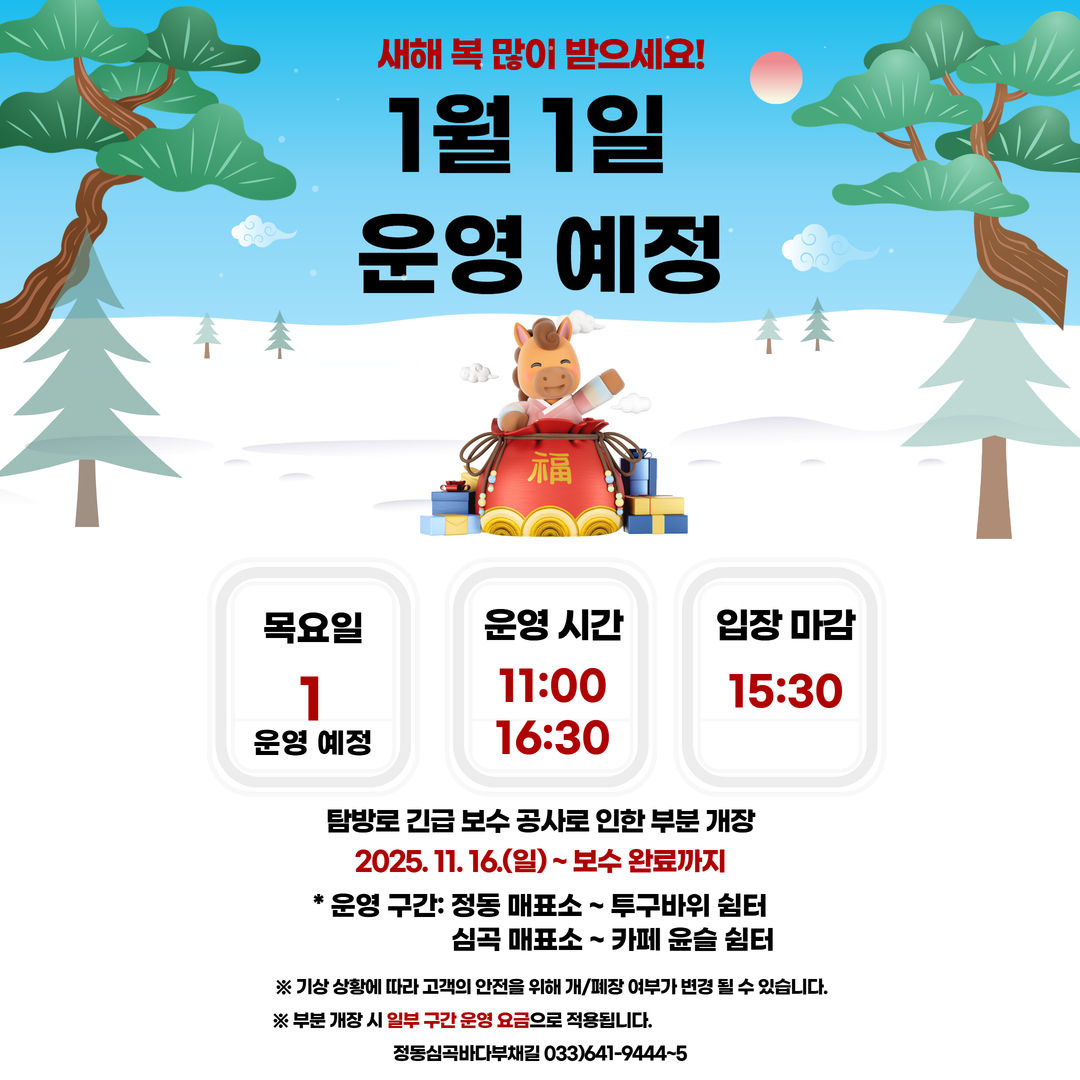 기상상황에 따라 고객의 안전을 위해 개/폐장여부가 변경될 수 있습니다.